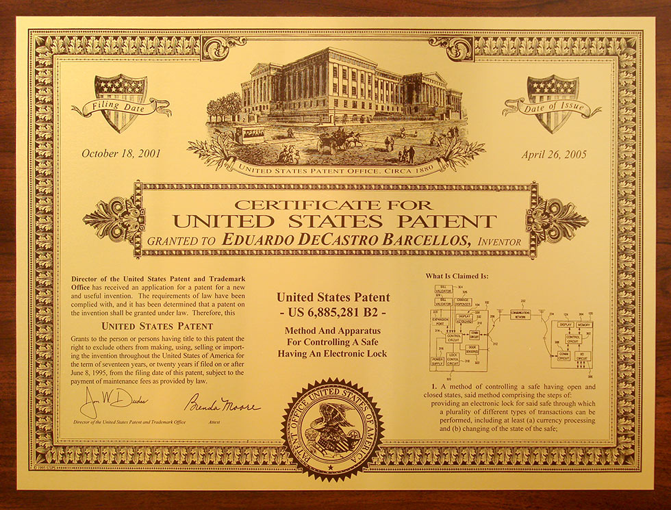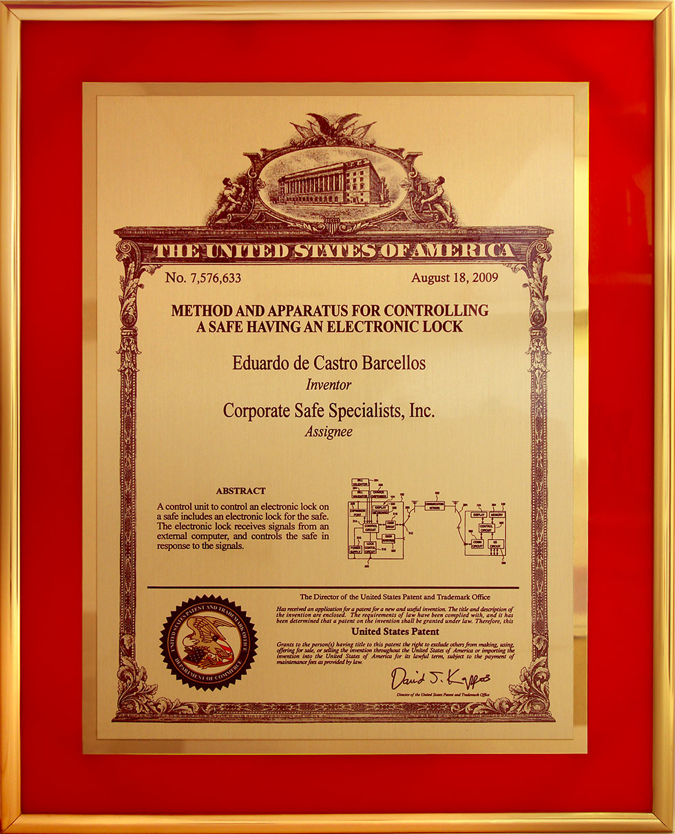 • US Patent 7,576,633 B2: "Method & Apparatus for Controlling a Safe Having an Electronic Lock"