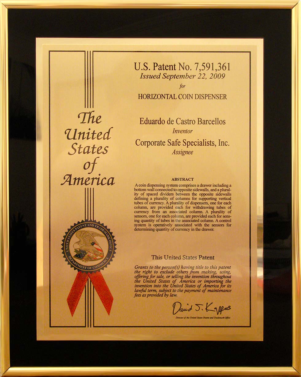 • US Patent 7,591,361 B2: "Horizontal Coin Dispenser"