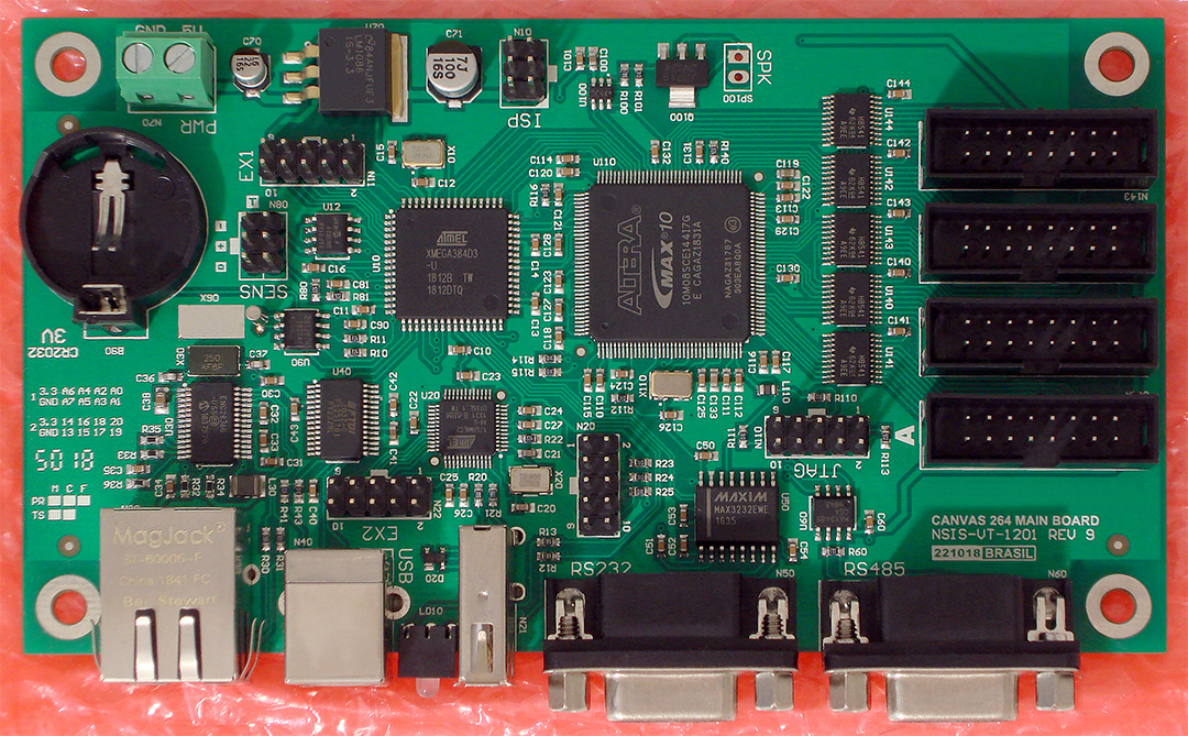 LED Message DisplayEnglish | Português The initial goal of this project was to design a simple LED display, with only one color and basic features. However, it was hard to stop after each version was completed, and so the project grew, becoming this display shown below. The electronics and the software were designed by myself at my home office. The display's size is flexible. It can be assembled to various widths and heights, and also being able to work vertically, where it change its procedures and switch to the vertical fonts. Most of the display's features are better presented on the images and videos that follows. Back to main page LED Display DemonstrationThis is a demonstration of the LED display in operation. If this video is not playing on your browser, click here to download it. About this videoThis video shows the LED display with a set of messages assembled to demonstrate some of its capabilities. The casing of the display on this video was intended to represent a smartphone, as requested by a specific client. The display's electronics do not require this extra space to the sides. Back to main pagePictures and Screen ShotsMiscellaneous pictures and screen shots related to the LED display. ![]() ![]() ![]() ![]() ![]() ![]() ![]() ![]() ![]() ![]() ![]() ![]() ![]() ![]() ![]() ![]() ![]() ![]() ![]() ![]() ![]() ![]() ![]() ![]() ![]() ![]() ![]() ![]() ![]() ![]() ![]() ![]() ![]() ![]() LED Display Software Demonstration, Part 1This is a demonstration of the LED display control software. If this video is not playing on your browser, click here to download it. About this video