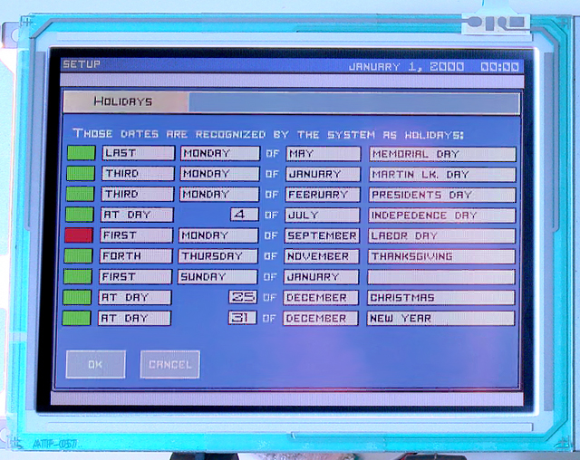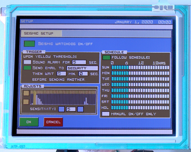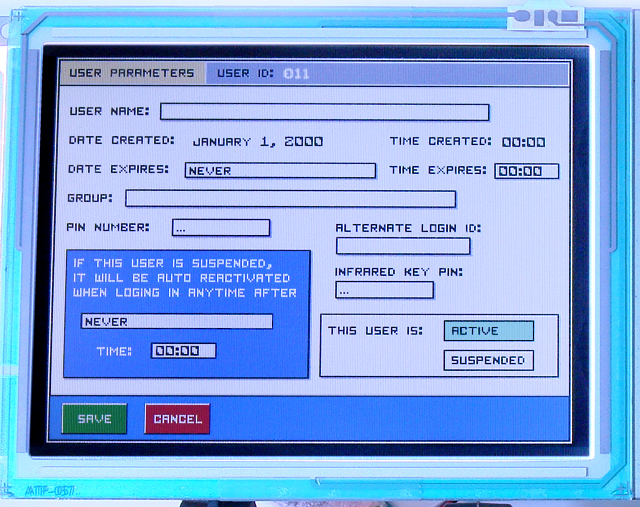 This video shows a demonstration of the QL4. Its an advanced safe lock designed for Corporate Safe Specialists based on the NSIS PAD, mostly for use in cash controlling safes, such as store safes and safes for business that handle a significant amount of cash. Pictures of the NSIS PAD / QL4Miscellaneous pictures of the system. ![]() Earlier version of the QL4 at the login screen. ![]() Window where you create or edit users. ![]() Keyboard appears when you tap a textbox. ![]() Seismic watchdog setup window. You can program the watchdog to sense small vibrations on the safe during a set schedule and act as programmed. ![]() How the time range of a day is set. ![]() Holidays can be programmed into the system to, for example, forbid the safe from being opened during holidays. ![]() Coin dispenser unit being developed as part of the QL4. ![]() This shows the system being assembled. ![]() Very early development stage of the NSIS PAD, after being able to simply show text on the screen. |